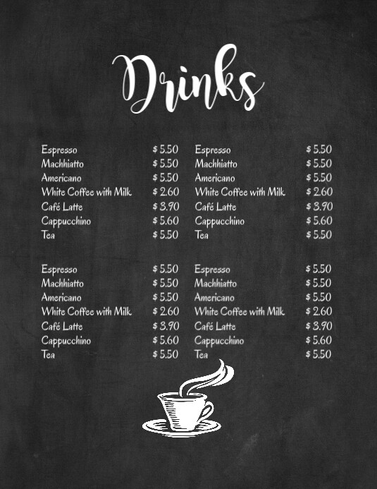 Chalk Board Hot Drinks Menu Bar Ad Price List Template PosterMyWall